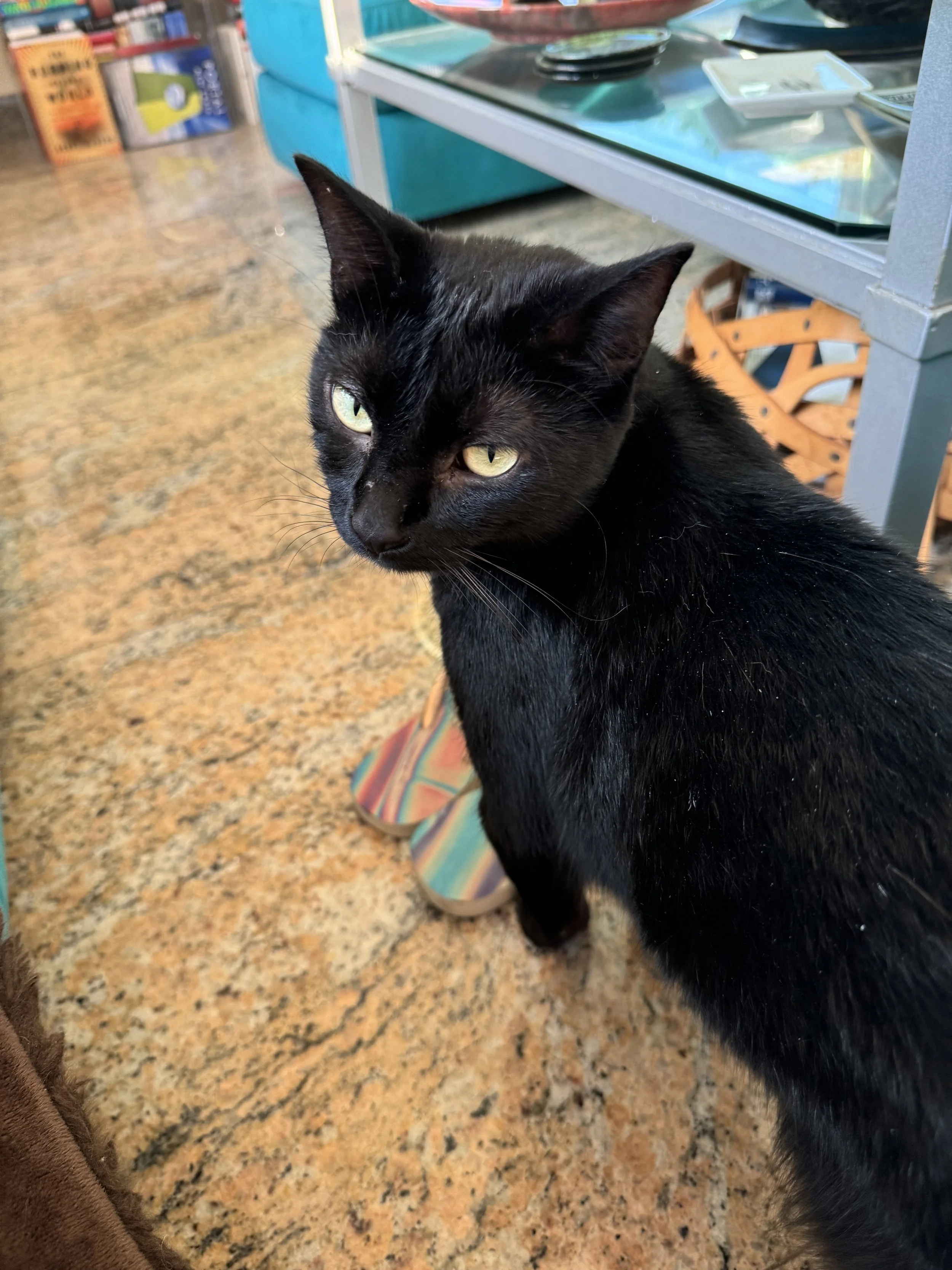 2 years old, sleek and shiny…a true baby Panther. Black toe beans? Check. Golden bright eyes? Check. The smoothest fur? Check. Brian needs a family with lots of action with kids, other cats, and even a fun doggy. This gentle boy needs more attention than our fostering senior couple can give him and Catmosphere Laguna certifies Brian 100% healthy, cute, sweet, and very much a couch and bed cuddler. Let’s get him adopted MEOW!