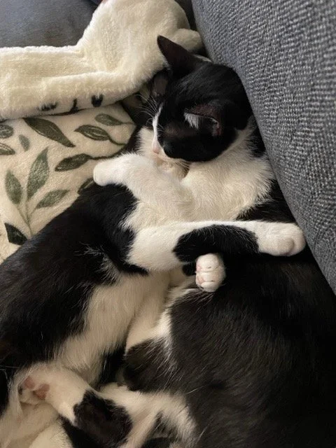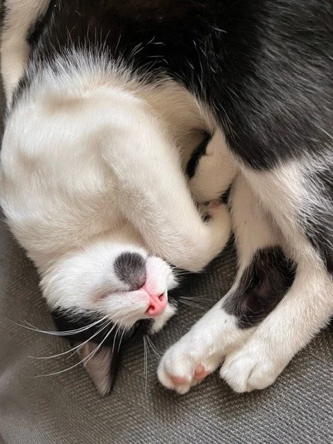 Catrina and Gwen Stacy bonded tuxedo sisters who love to play with each other and cuddle. Super playful 4 month old girls.