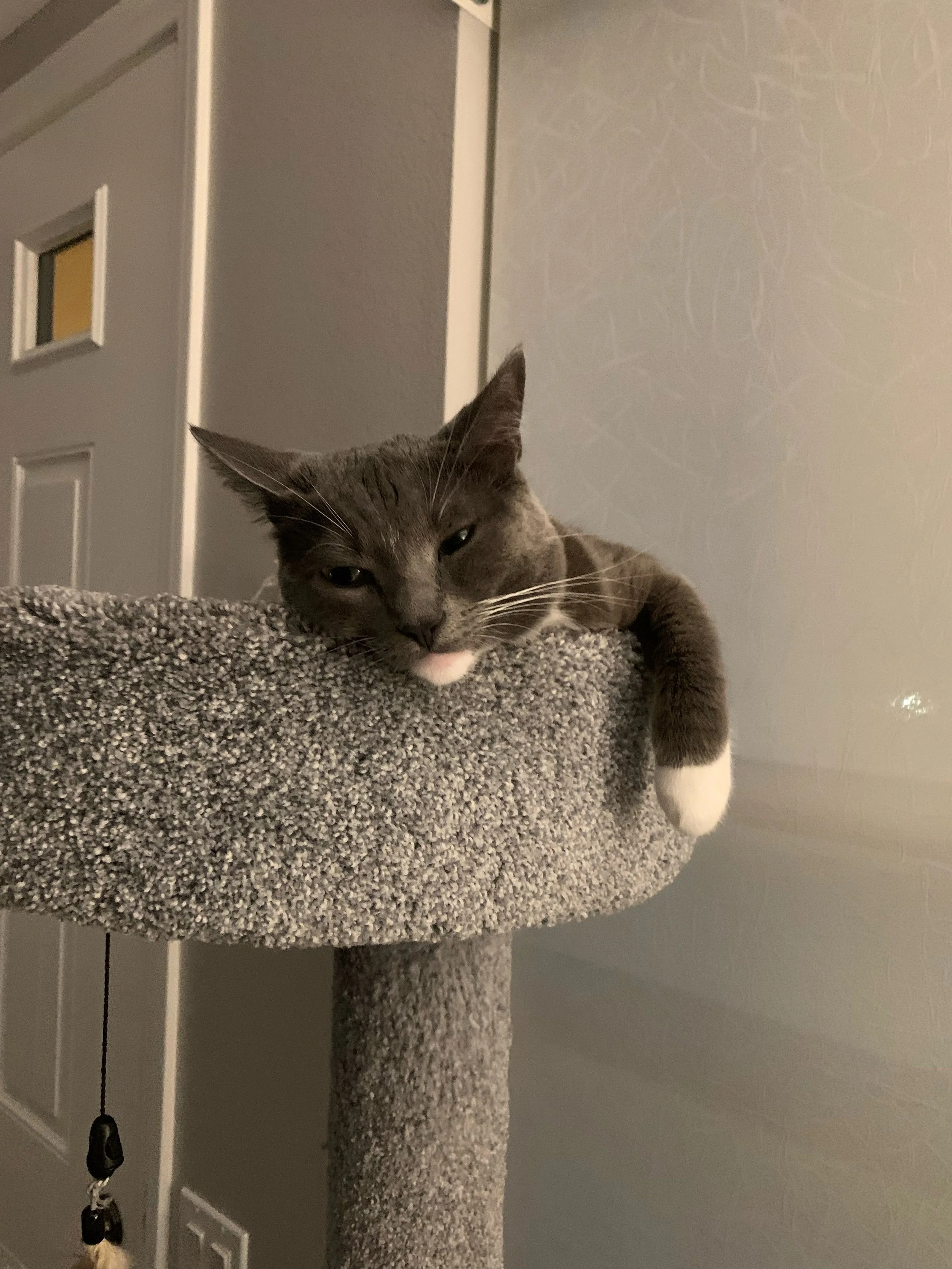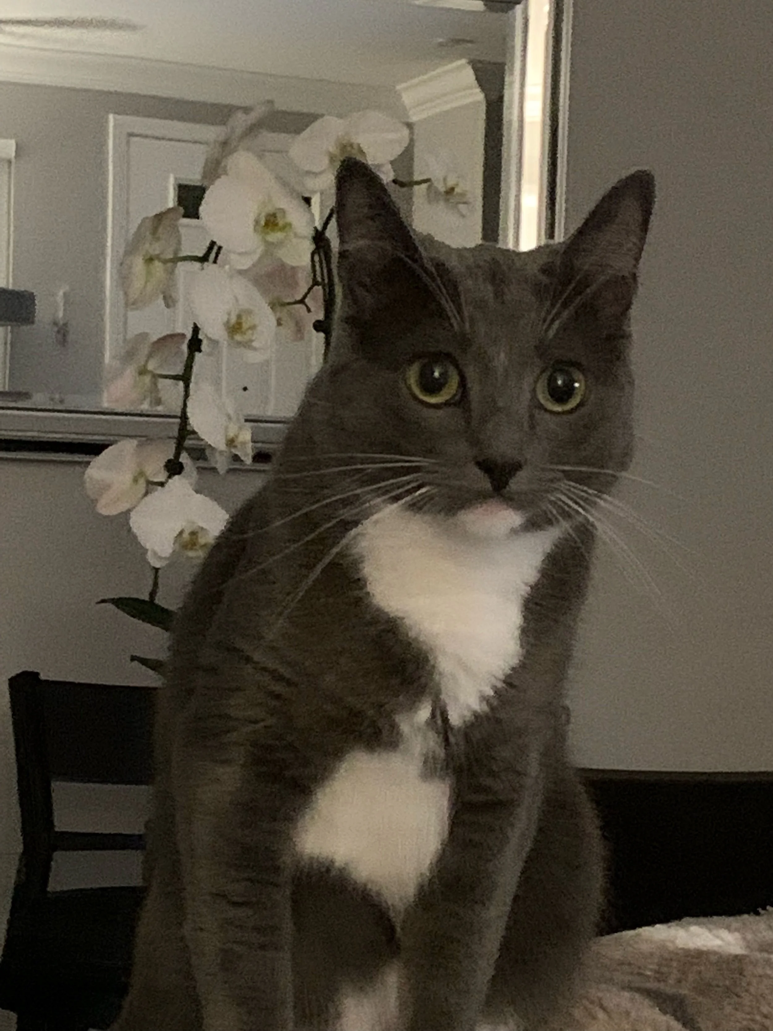 Charlotte is a beautiful 4 year old Russian Blue mix. Charlotte started her young cat life as a pregnant Mama cat whose kittens were hand raised by our lovely foster Miss Jacki. They are all adopted and doing great. Charlotte nursed them well, however, when her Mama duties were through Charlotte bloomed as a companion cat who would love to be in a home where she receives lots of attention. If you work from home and have time for brushing, purrs, and cuddles, you would be “purrrfect.” Let us know when you would like to meet this beautiful girl.