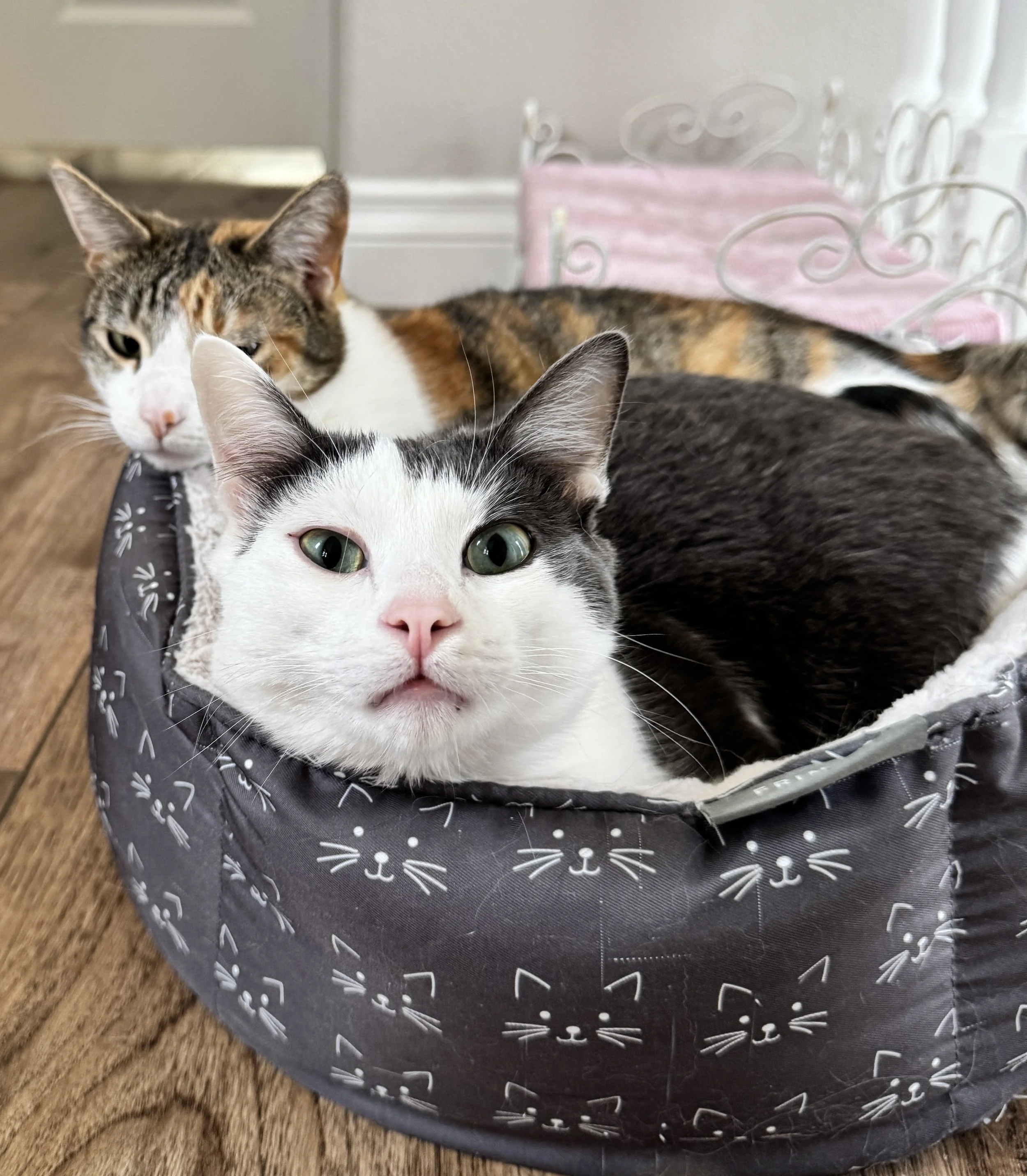 happy, sweet, shy Cleo loves the company of other cats. She’s timid, yet confident; chatty and responsive in conversations. Prior to coming to my care, Cleo gave birth to a single kitten, whose adoptive family we have contact with. Cleo also fostered kittens that were not her own.