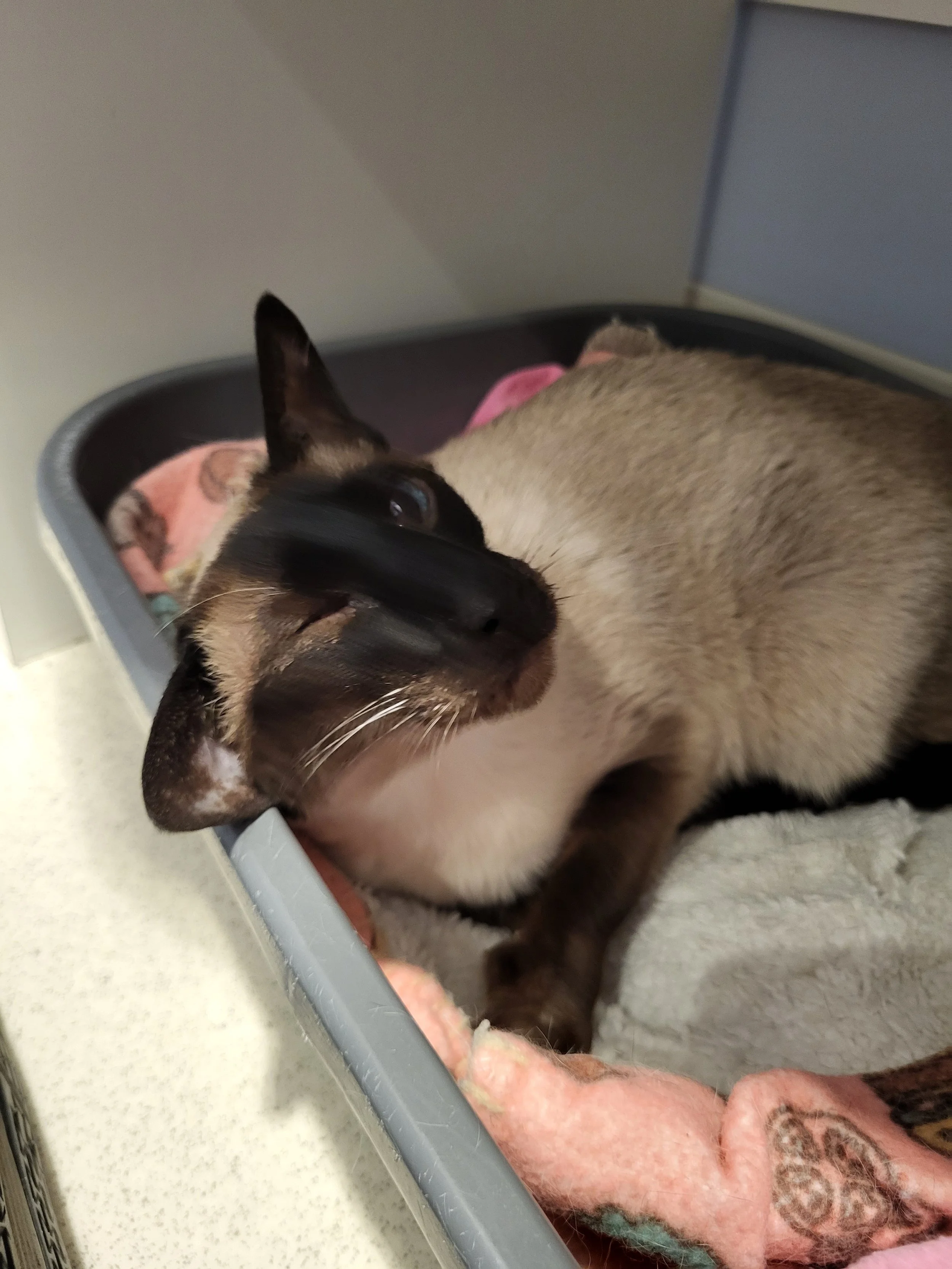 Do you have a place in your heart for an older kitty. Miss Delilah is an 11 year old senior delight! She is a super sweet blue-eyed Siamese girl in need of a new furreverhome due to unseen circumstances. Delilah is a purr machine and just wants to cuddle. She loves hearing her name called.