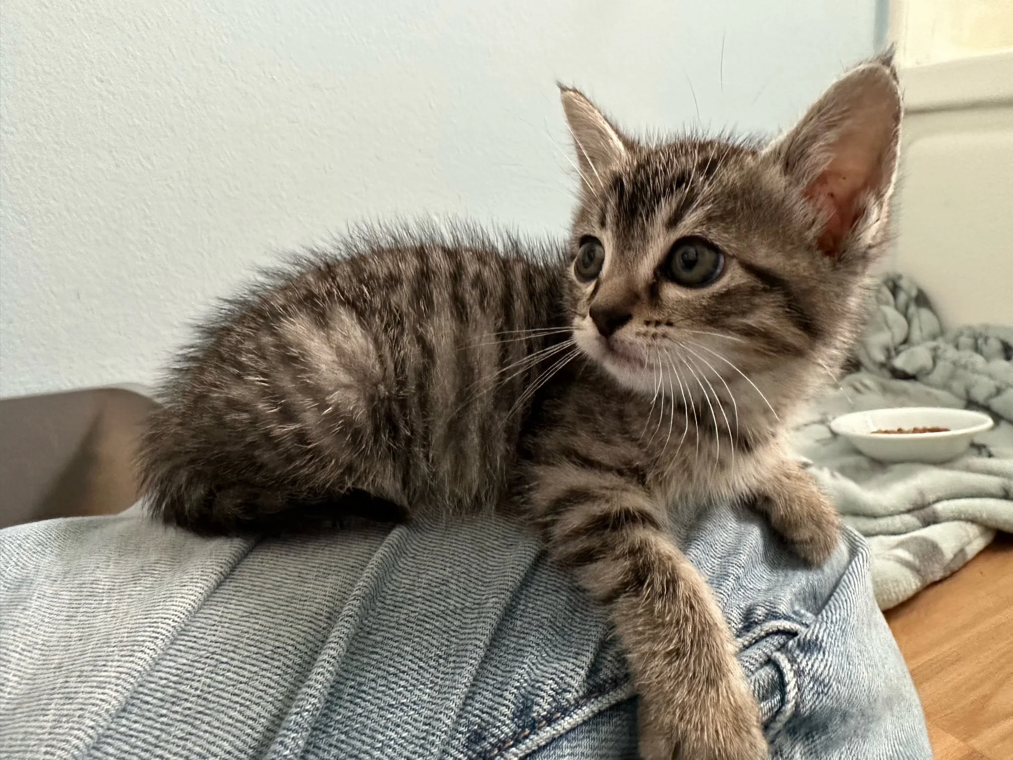 Hi world!! My name is Emma. I was rescued by Nicole and Paul on June 15, 2023. Nicole was going for a jog and heard my cry. I was stuck in thick brush covered by ivy and thick thorned bushes, not sure how I got here, but thankfully Daddy Paul jumped a 6 foot fence and found me. I’m already litter trained and have the hunger of a football team. I love to play soccer and am looking for a loving home and hope to be someones furrever fur baby!!