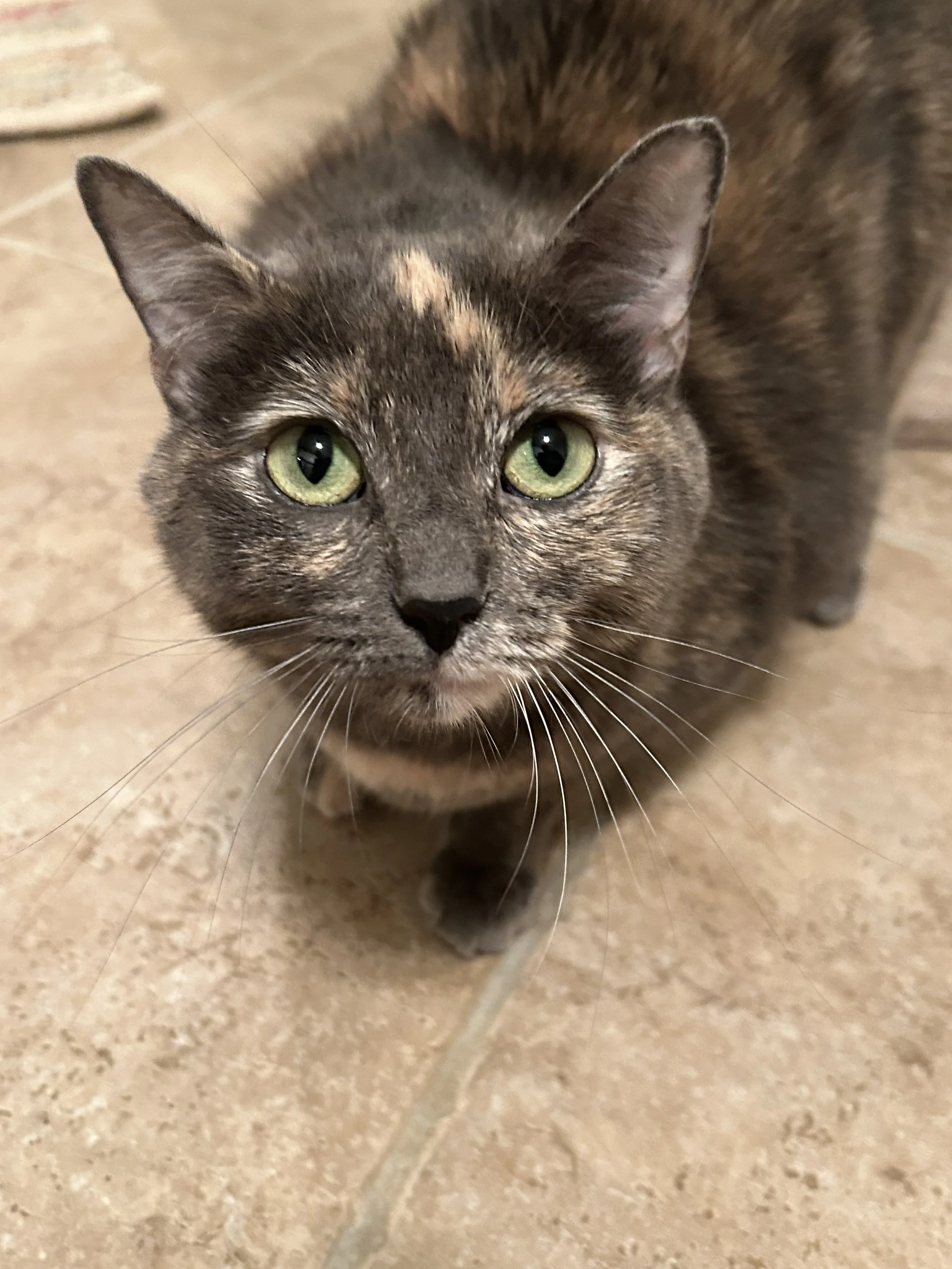 Maya 23 months old sister of Jasper, very sweet, loves human interaction and seeks attention. Loves to play with her brother jasper. Also fearful of dogs, but brave and more adventurous than Jasper. She will seek your lap for attention and poke at your hands to be petted. Likes to sleep with you in bed.