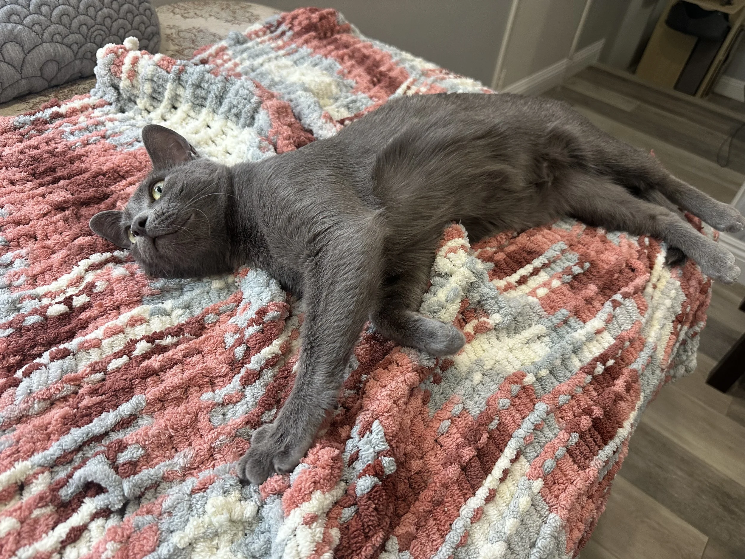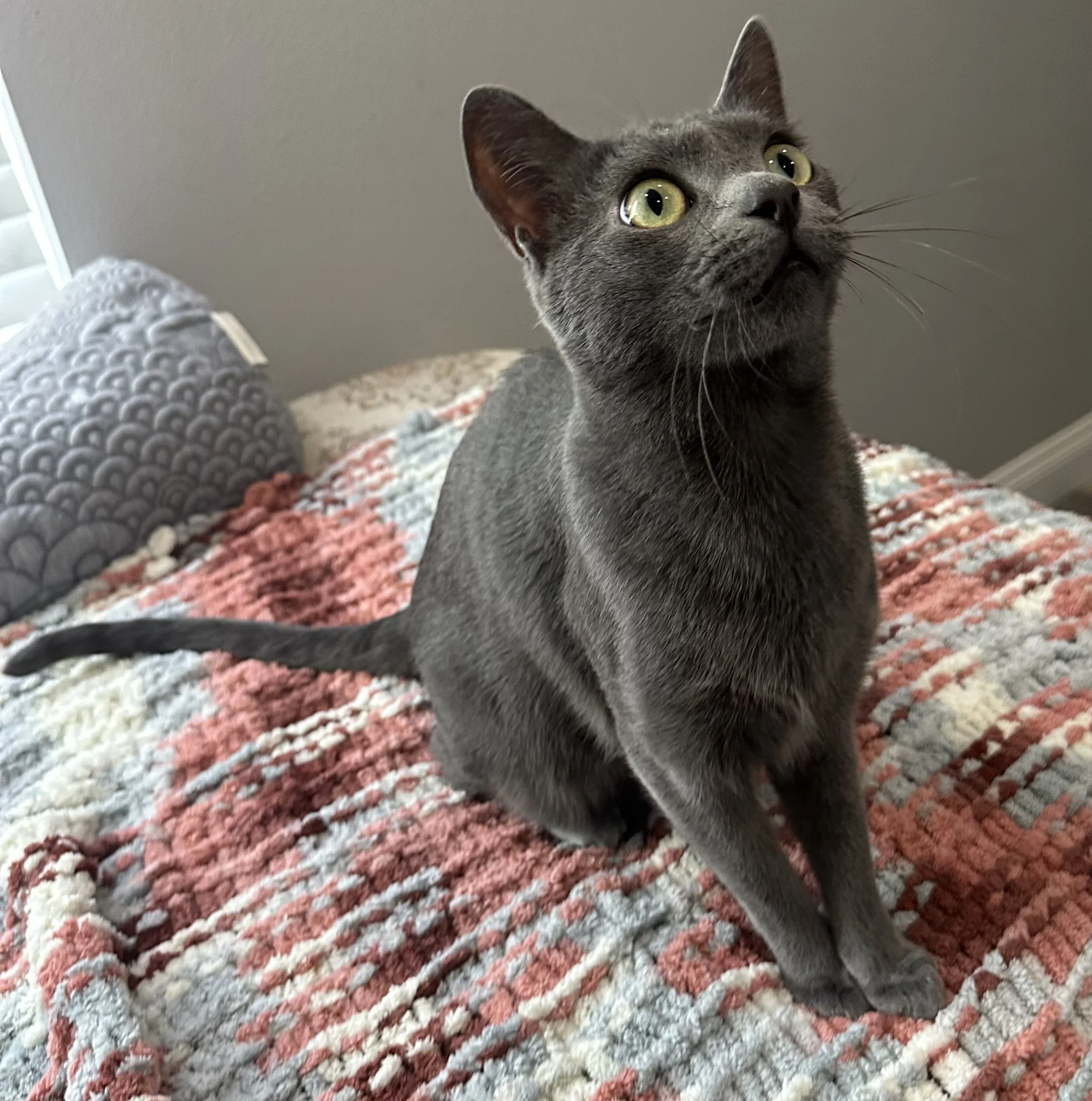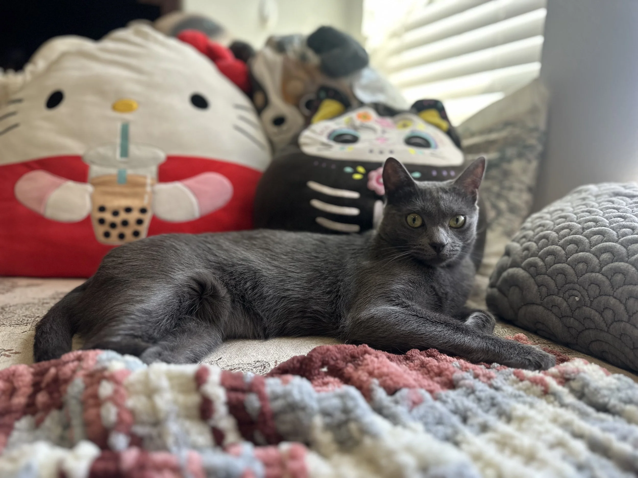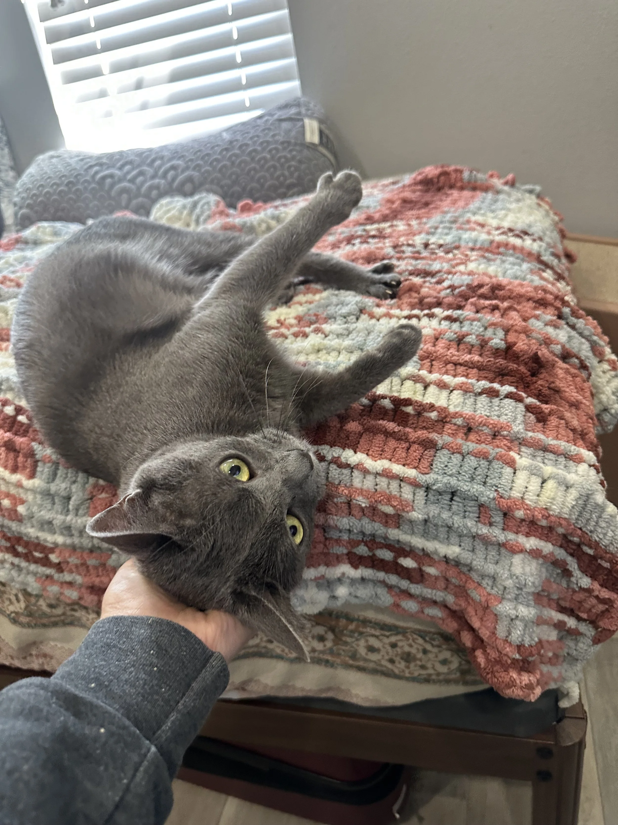 Once he feels safe, Koa’s personality shines! He adores cuddling, lounging in laps, and showing off his silly side during playtime—especially when feather or spring toys are involved. He’s got a soft spot for cozy spots and gentle affection, and he’ll reward your patience with endless purrs and snuggles.