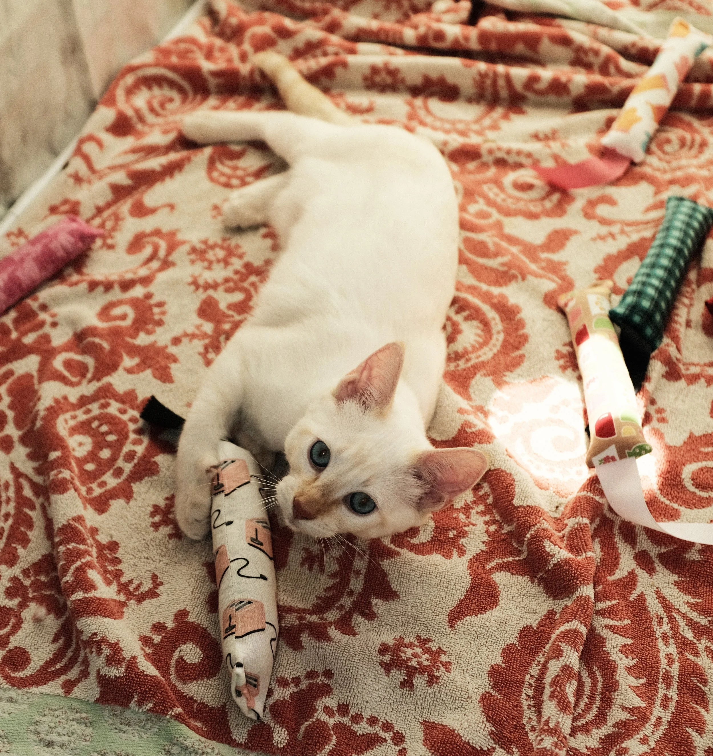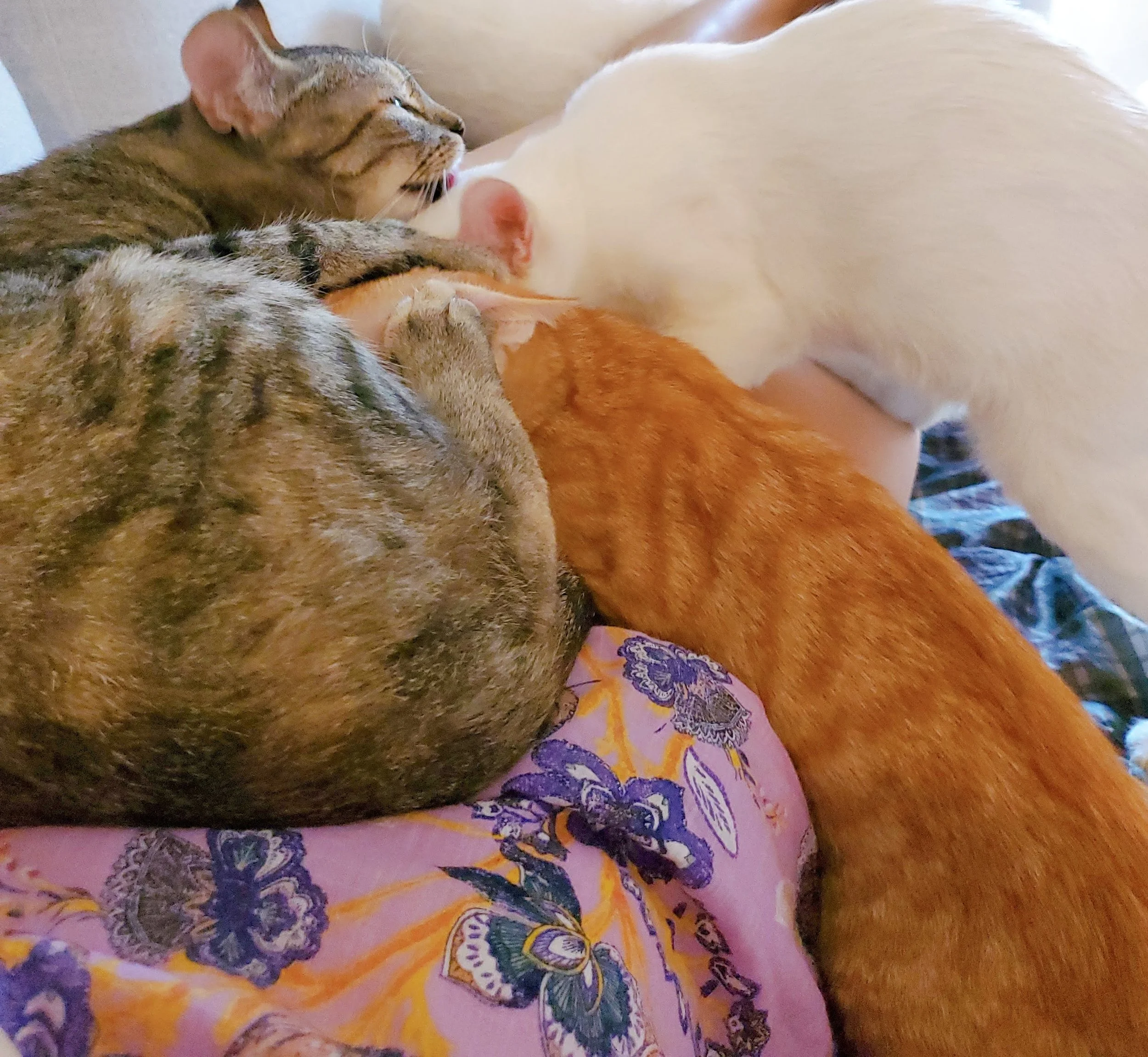 Mama Luna (tabby) and her daughters Lilith (orange tabby girl 🐈) and Leda (flame point) came from a scary outside situation in Santa Ana.