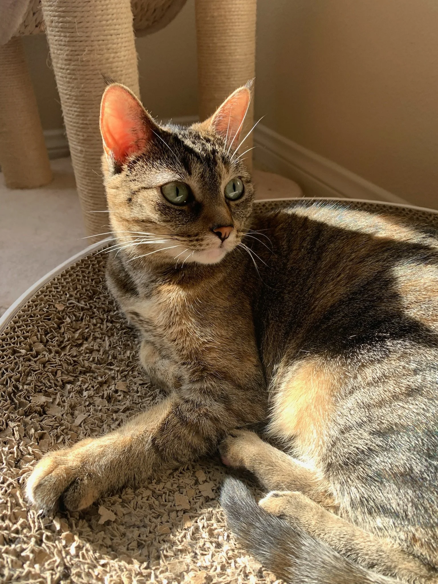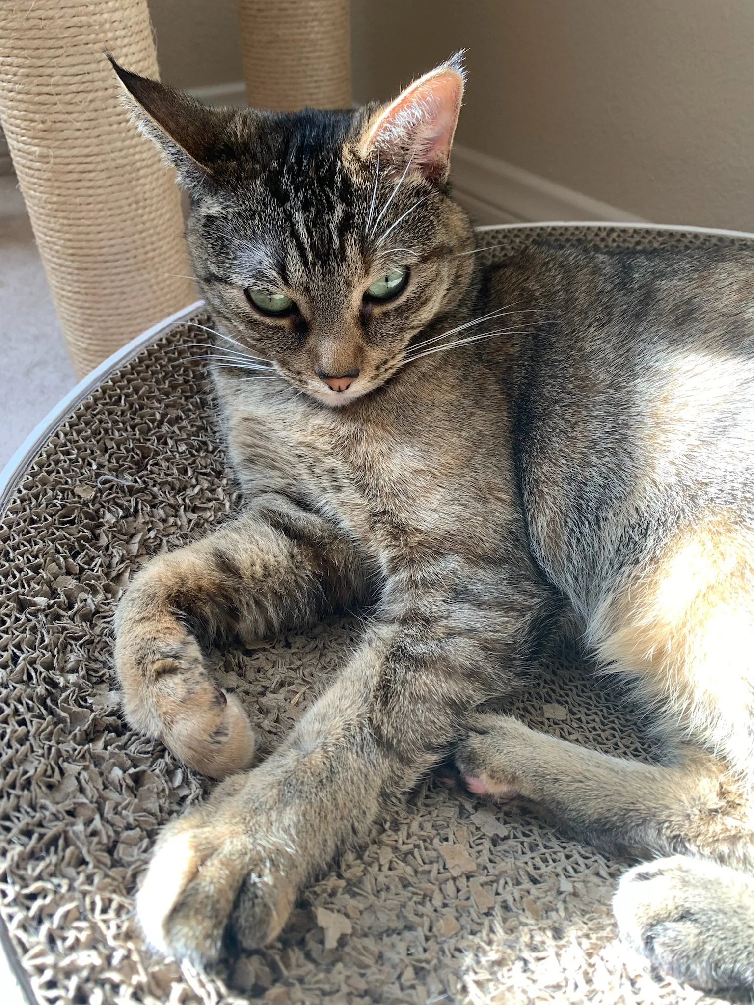 Olivia gave birth to one kitten, Piper, who has been adopted. Olivia spends her time as a foster mom to new kittens, she is a wonderful caring, sweet kitty.