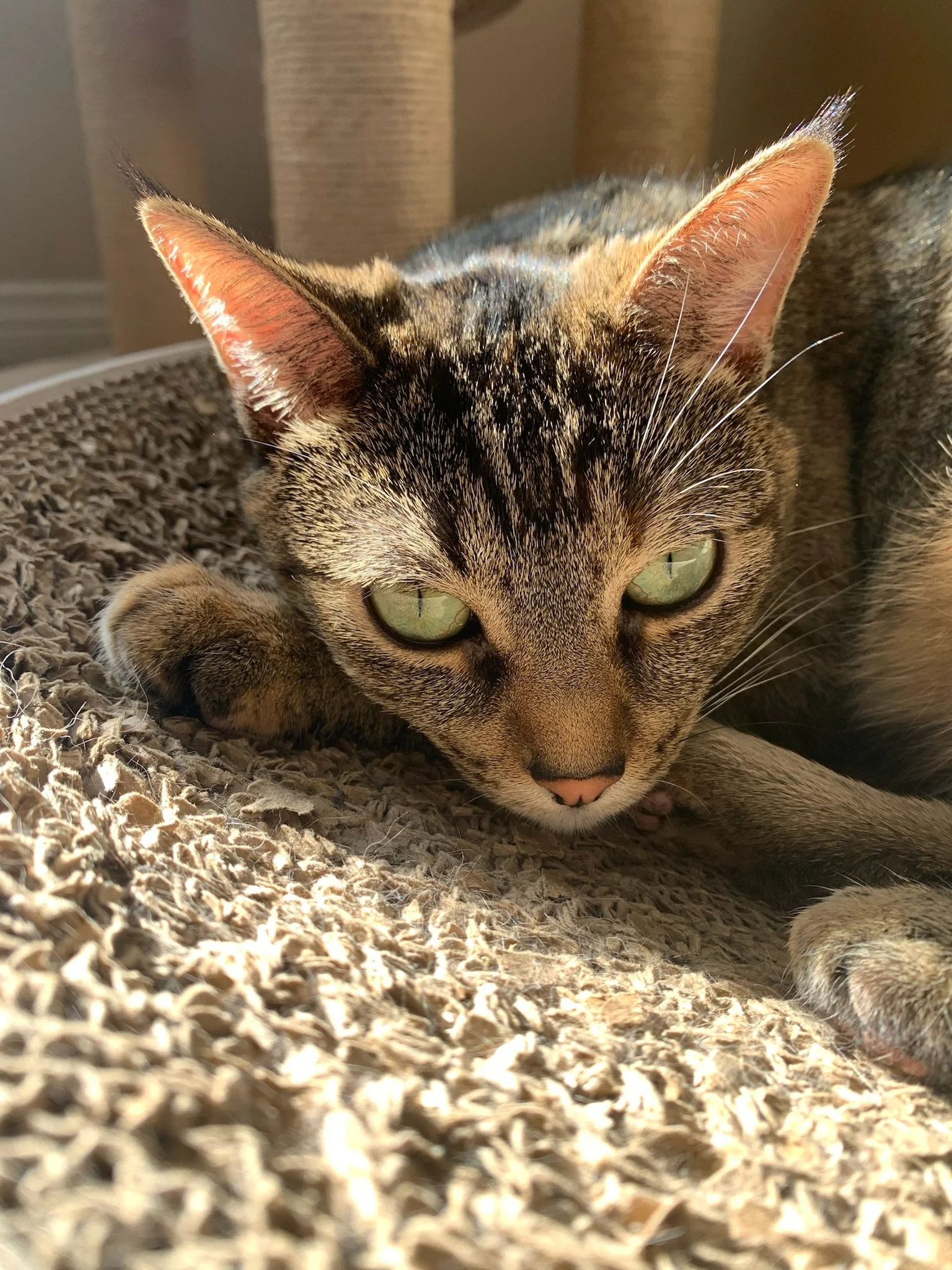Olivia, a sweet young has the most loving temperament. She will lay half in your lap and loves to jump up on the bed for snuggles. She also likes to sit on top of the sofa cushion to be close. She has a lovely purr and the most beautiful trills. She will announce proudly with her cute sounds when she has brought you a toy. Olivia gets along with all cats and will make the most wonderful companion.