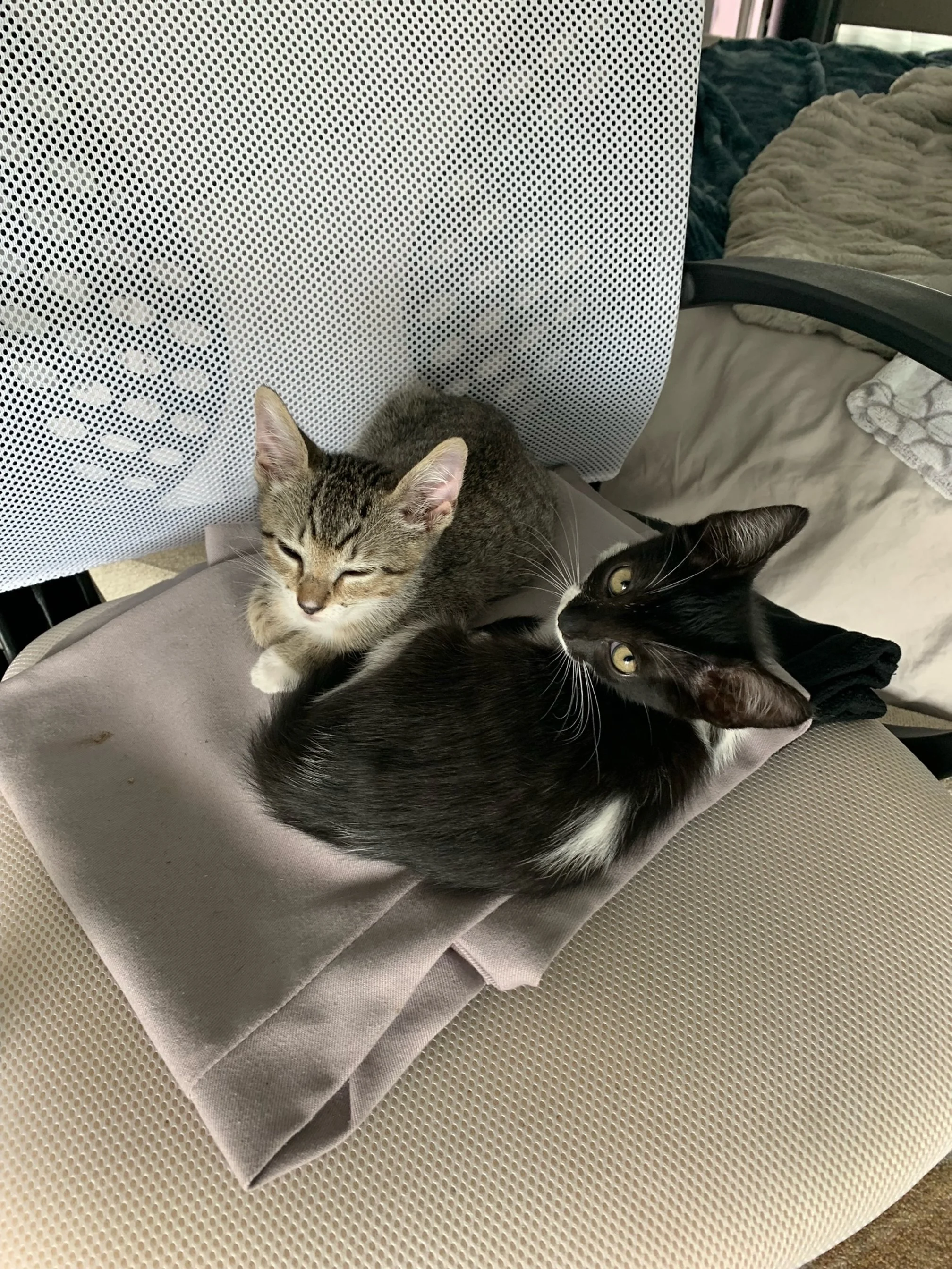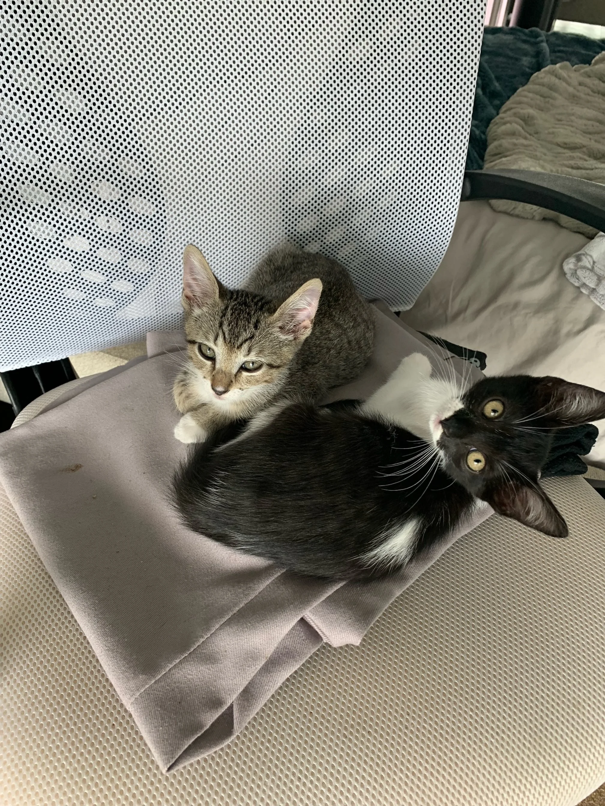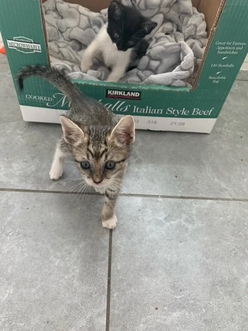 6 week old bonded siblings, Samson and his sister Delilah, are available for adoption. Samson (grey tabby) is play full, loving, curious, and loves toys! Delilah (tuxedo) is play full, loves her scratch pad, loves her toys, and loves her hugs and kisses!