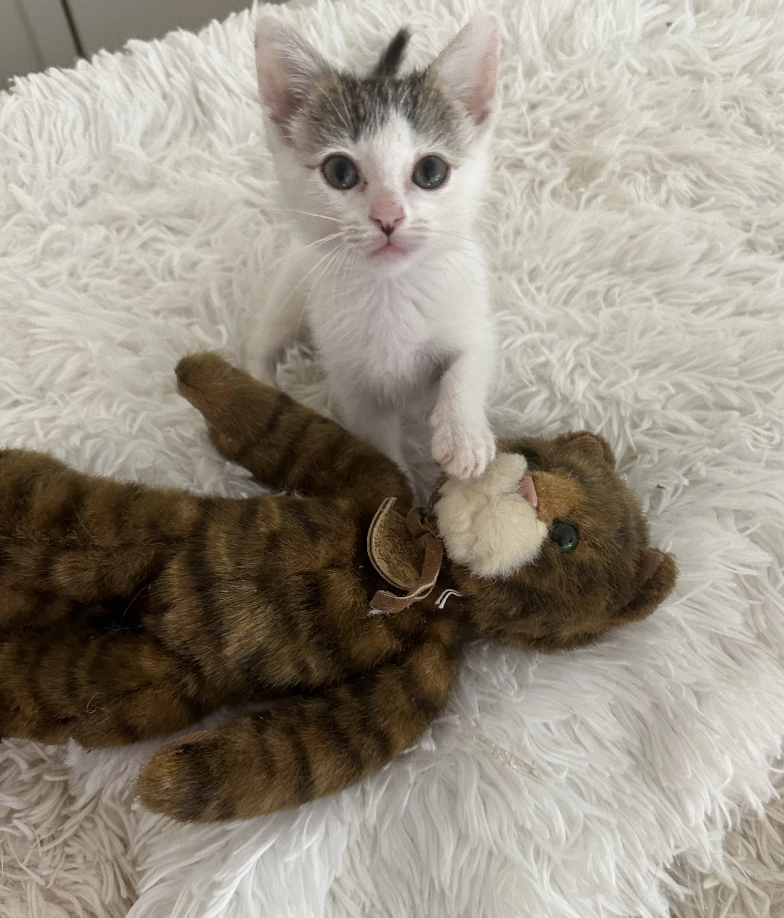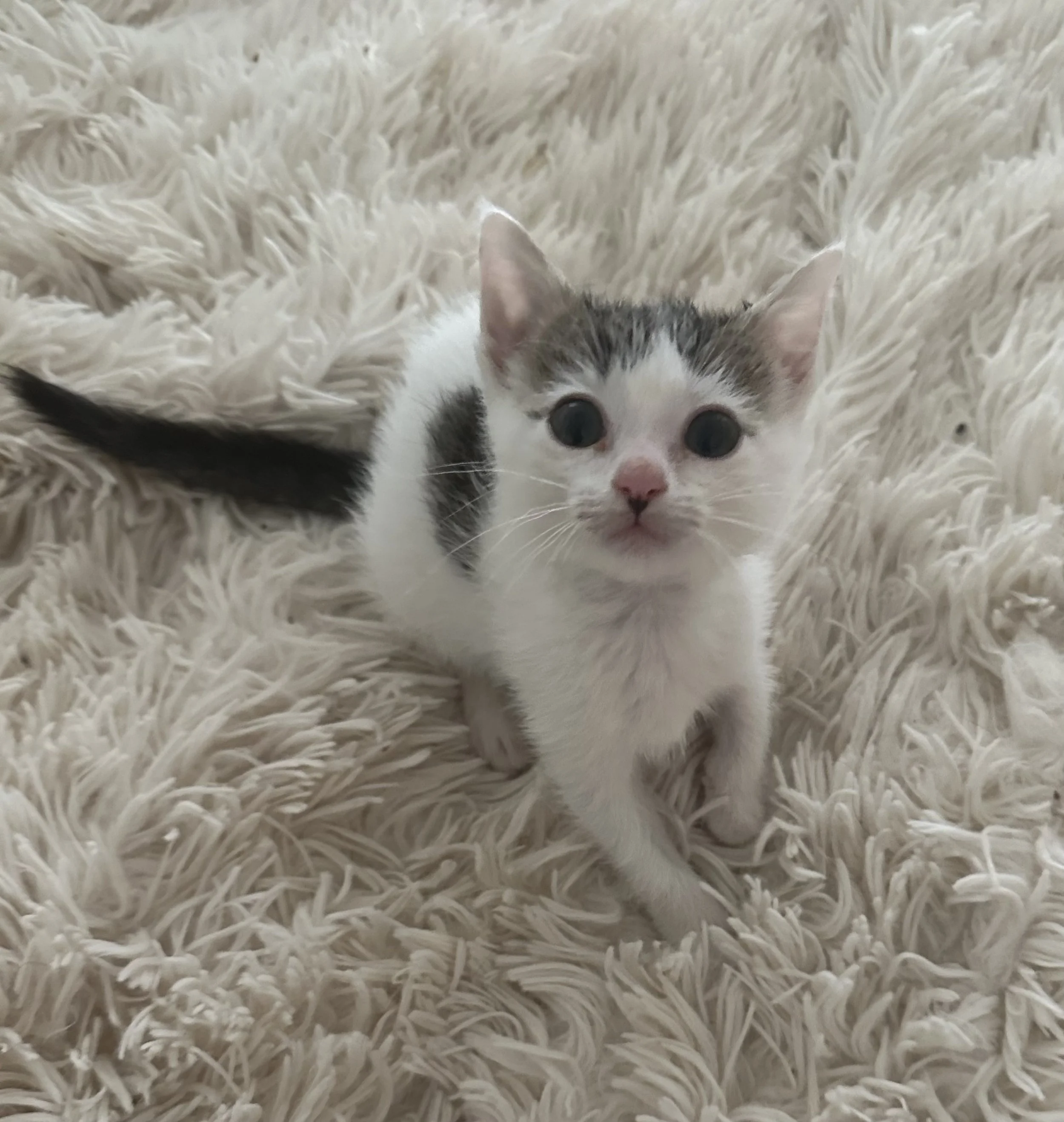 Sha Sha is a beautiful, sweet mellow kitten She loves playing with her mouse toys and her siblings but really wants to be in your lap getting her head rubs!! She is very affectionate and constantly purring with joy!