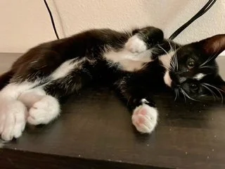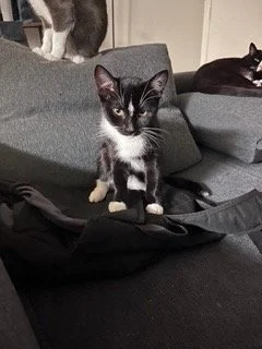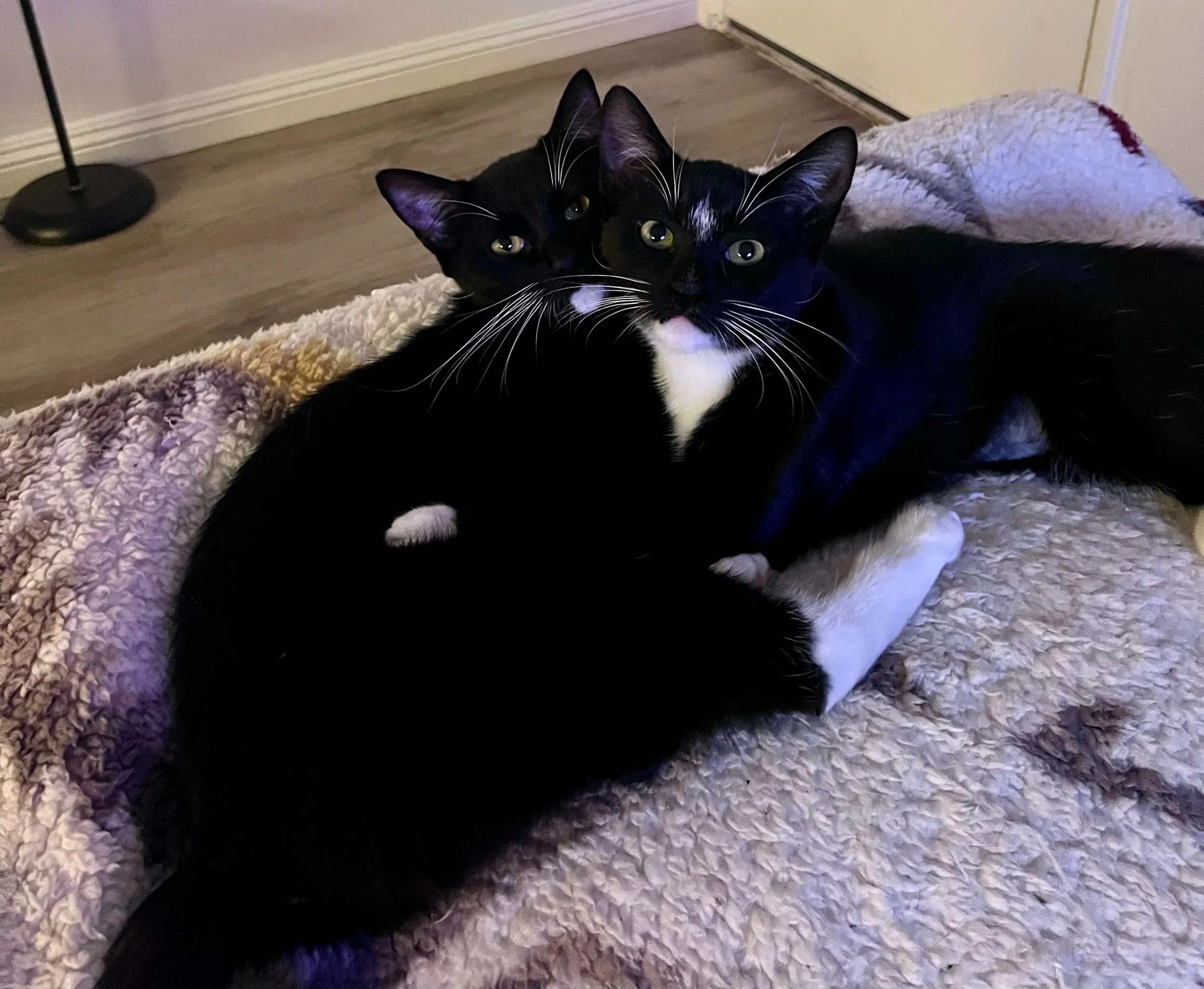 Bonded Pair Taco and Alice are 5b month old tuxedo girls found with their Mama Oreo outside.