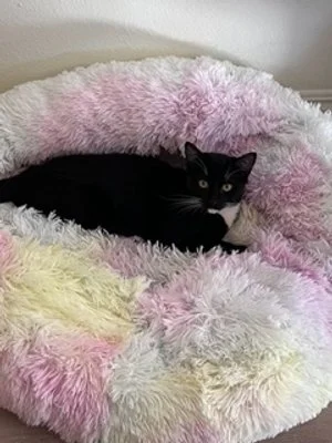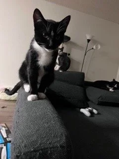 Alice Hi my name is Alice, I’m extremely playful and love getting pets. My favorite toy is my zebra string. I love to jump really high and try and catch it. I’m very spunky and love to lay in the sun. I’m great with other cats and people and love to talk back when you talk to me. Talia has been fully vetted and spayed. She would do well in a home without dogs but gets along well with kids and other gentle cats. She seems to want to bond one on one with humans.