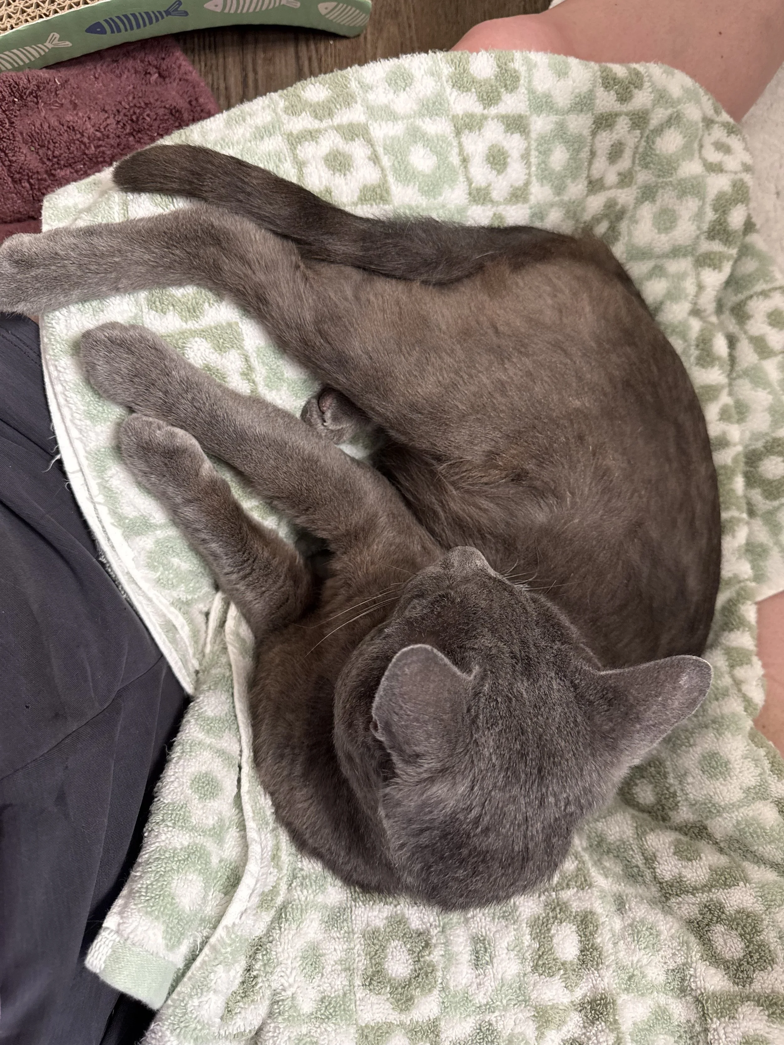 While recovering with our foster Megan, Theo began to show his true self: not a feral or fearful street cat, but a gentle, affectionate soul who craved human connection. Megan quickly realized Theo didn’t belong back on the streets—he belonged in someone’s arms.