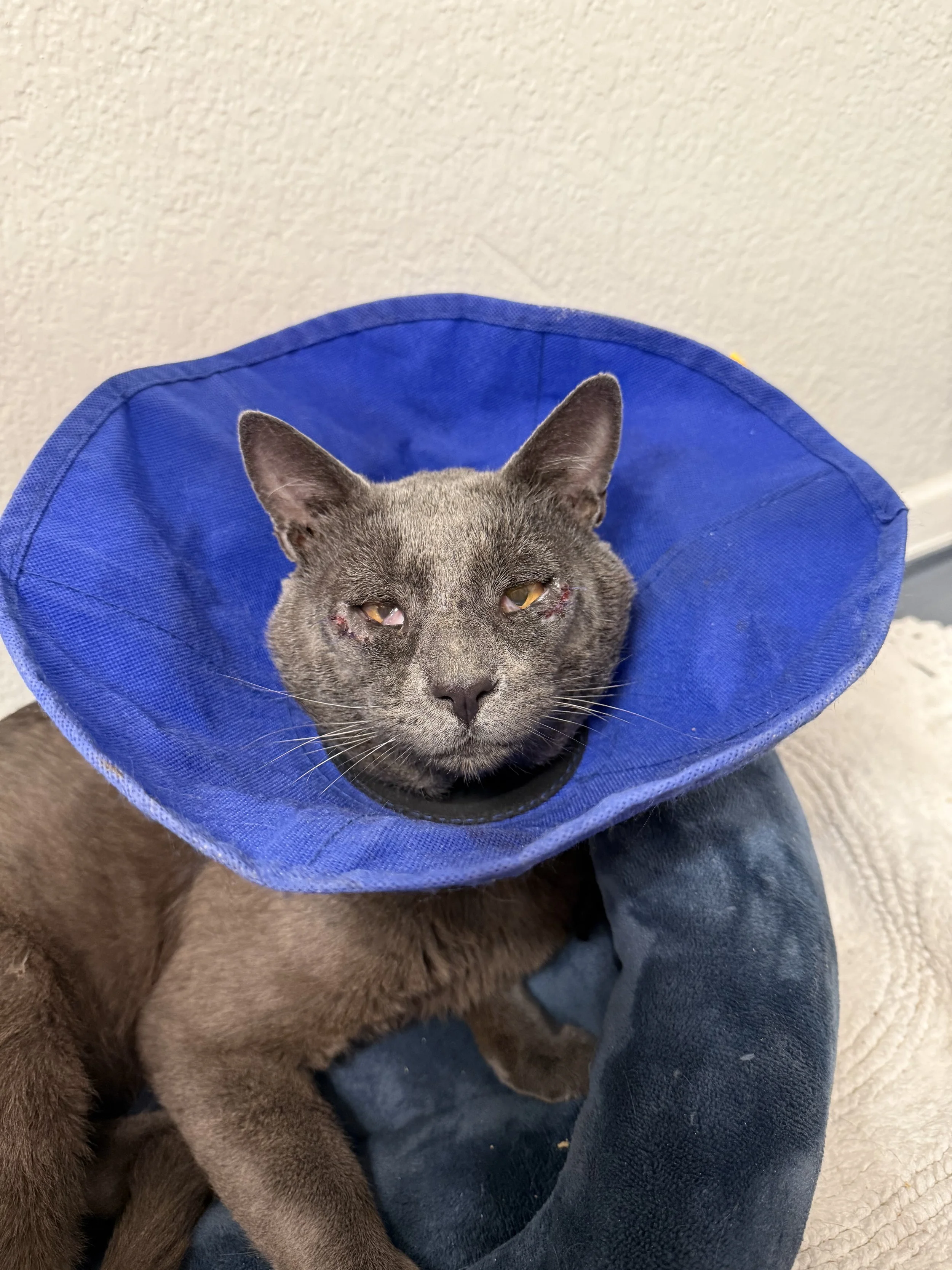 Theo’s past is mostly a mystery—he was found wandering the streets in heartbreaking condition by one of our fosters. Life hadn’t been kind to him. His eyes were painful and swollen from a condition called entropion, where his eyelashes turned inward and scraped against his corneas. Thankfully, he was safely trapped and received the surgery he needed to live without pain.